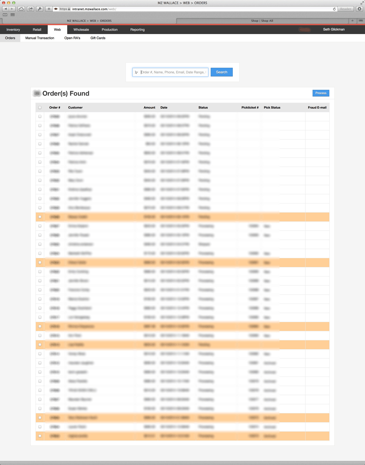 Orders placed online managed and fulfilled all from within the Intranet